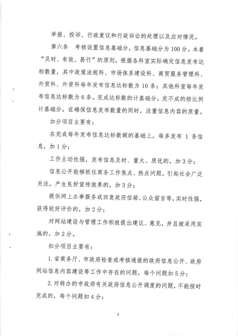 市商务局政府信息公开考核办法